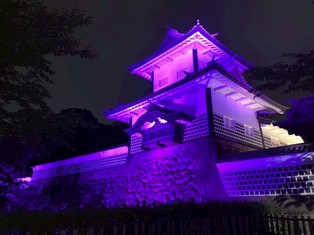 5月19日の「World IBD Day」に合わせて、金沢の象徴である鼓門や金沢城をシンボルカラーの「パープル」にライトアップ。